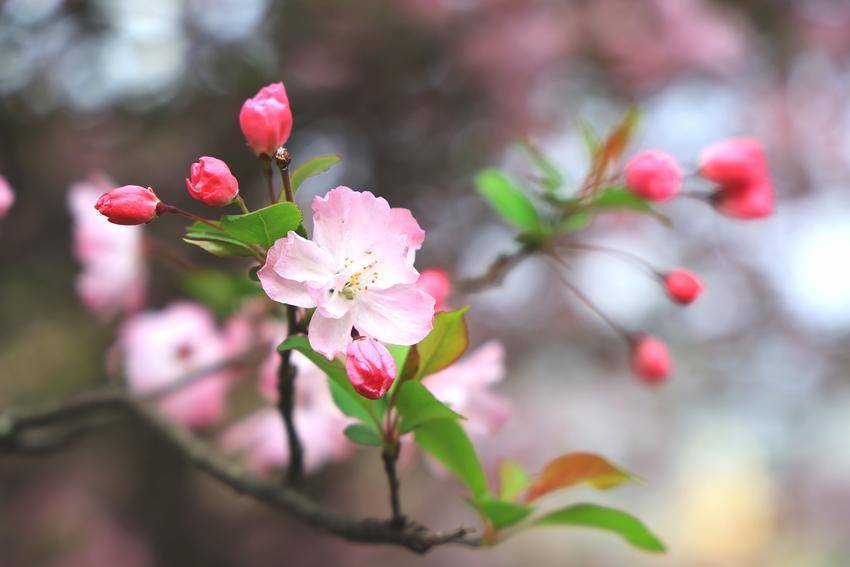 不争桃李灼灼明艳,不效梨花皎皎清寒,只以一抹清雅淡韵,静静点亮山城烟景。行人驻足凝眸,鼻尖萦绕淡淡清芬,原来兴山满城春意,皆藏于这一树海棠温婉风骨里。